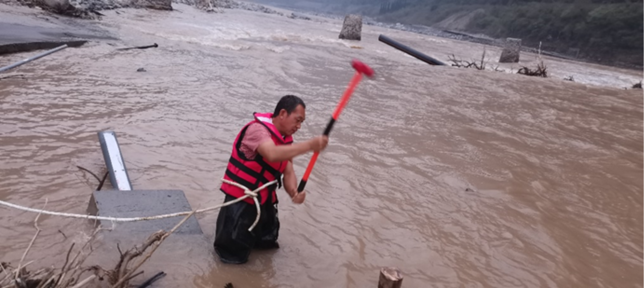 水文是防汛抗洪的“耳目”“尖兵”,一旦水文数据丢失,水旱灾害防御就缺少了重要的数据支撑和决策依据。危急时刻,水利部黄河水利委员会水文局河南水文水资源局五龙口水文站站长宝拥军主动请缨,和同事一道紧急驰援山里泉站。他们越过湍急的河流,翻过陡滑的山坡,克服种种困难抵达山里泉水文站。