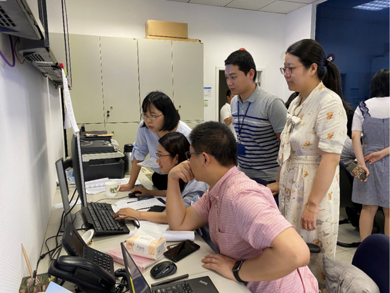 水利部太湖流域管理局水文局情报预报科科长刘敏与同事进行预报分析。受访者供图