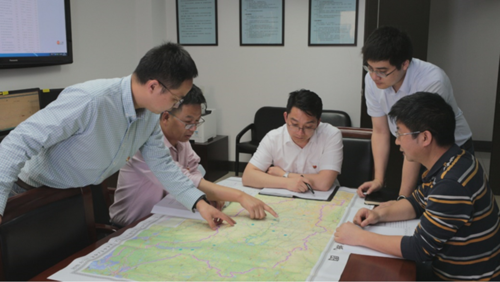 水利部长江水利委员会防御局调度处党员干部集体研究调度方案。受访者供图