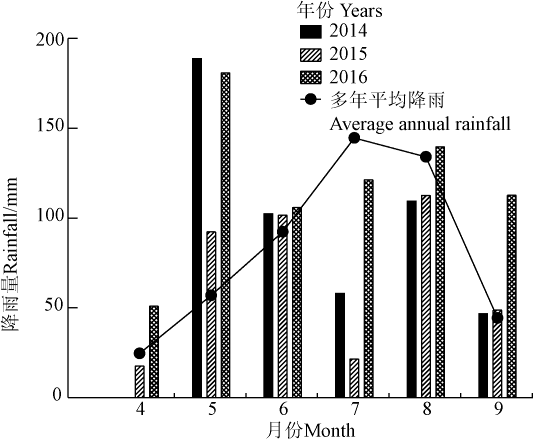降雨量数据来源于实验站内距试验地约 30 m 的自动气象站,每 30 min 测定 1 次。