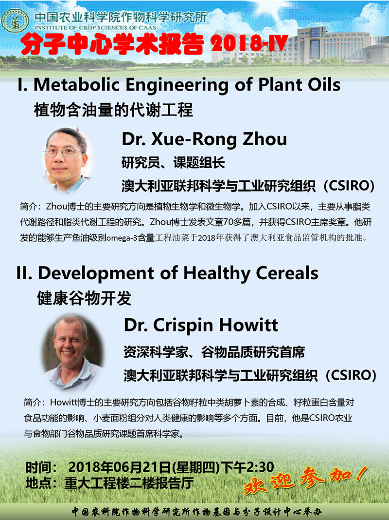 植物含油量的代谢工程 健康谷物开发 分子中心学术报告2018-4