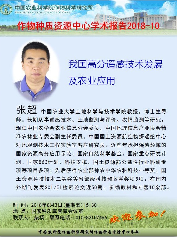 我国高分遥感技术发展及农业应用 作物种质资源中心学术报告2018-10