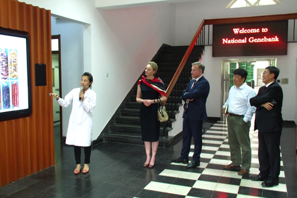 9月11日,塔斯马尼亚州州长威尔·霍奇曼率代表团一行24人访问中国农业科学院作物科学研究所,参观考察了国家作物种质库和作科所科技展厅。国际合作局局长贡锡锋和作科所所长刘春明等领导和专家陪同参观。