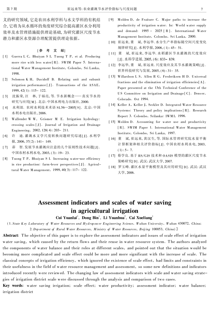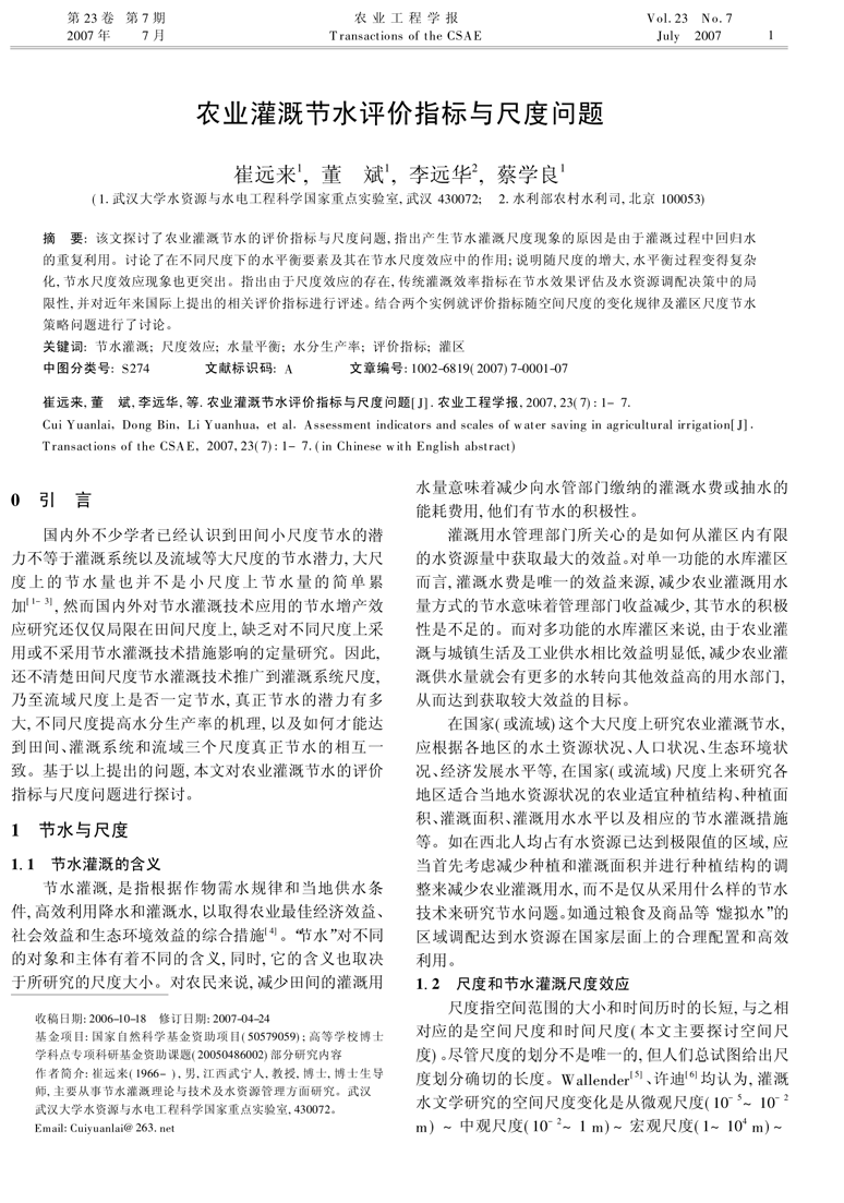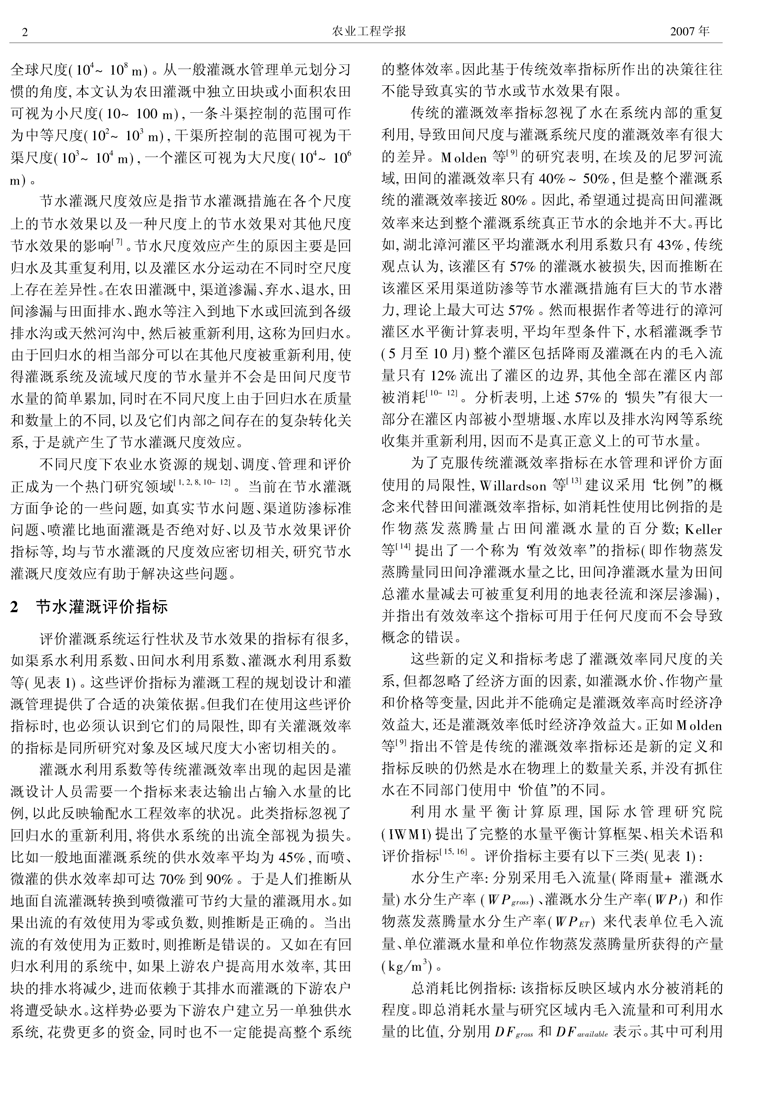 农业灌溉节水评价指标与尺度问题(1)
