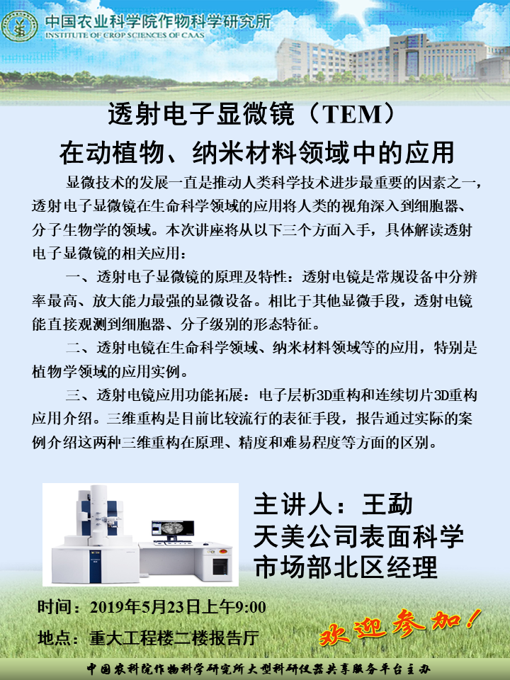 王勐 透射电子显微镜(TEM)在动植物、纳米材料领域中的应用