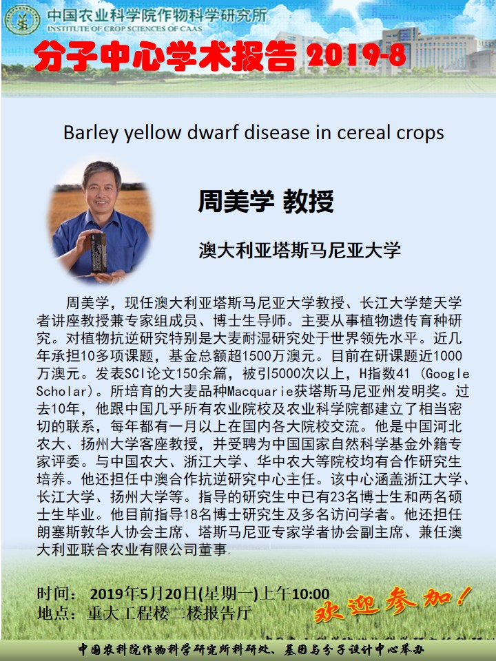 周美学 Barley yellow dwarf disease in cereal crops(分子中心学术报告2019-8)