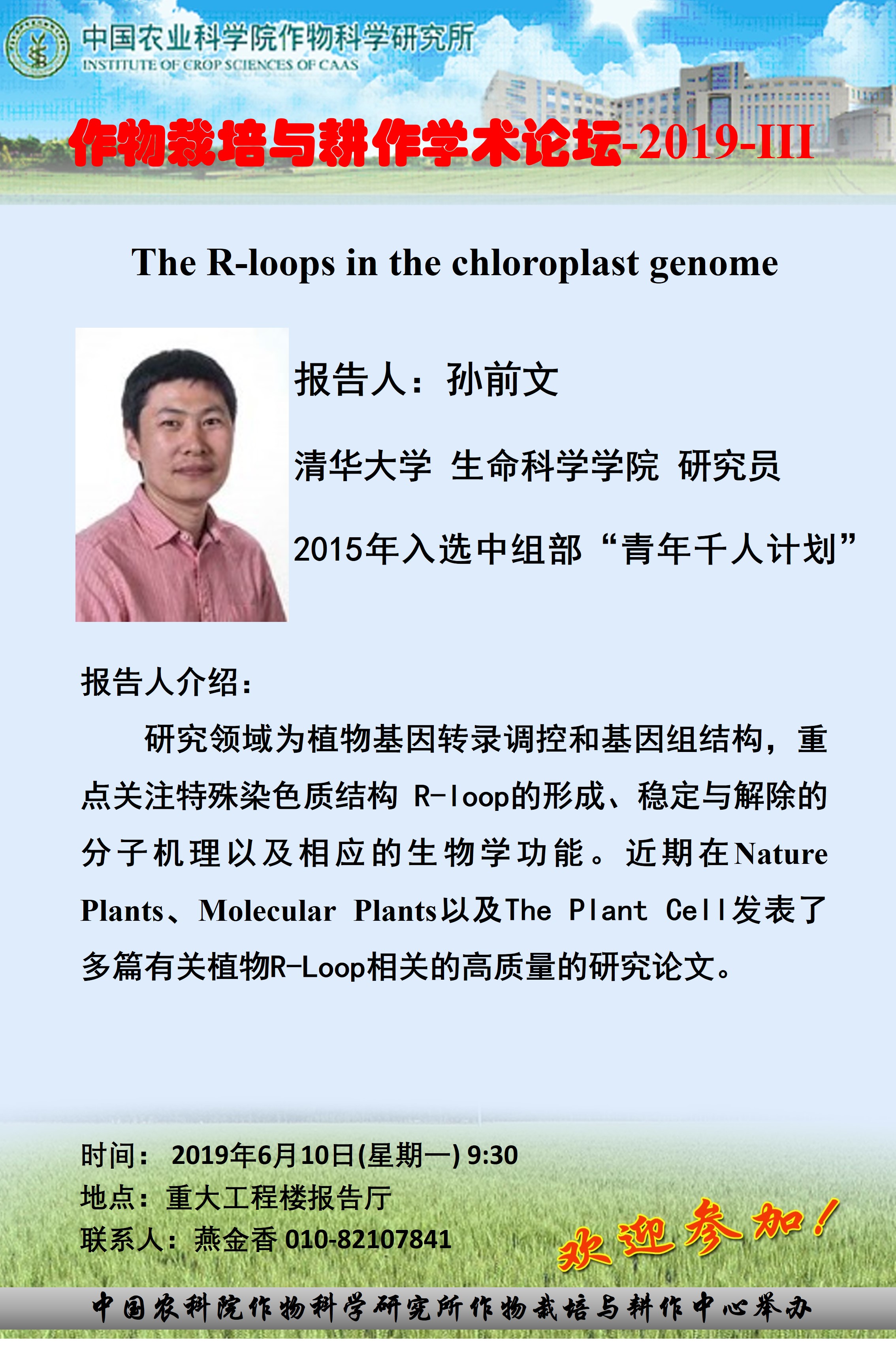 孙前文 The R-loops in the chloroplast genome(作物栽培与耕作学术论坛 2019-3)