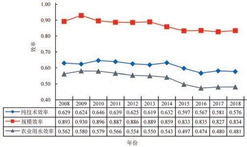 (2) 黄河流域农业用水的纯技术效率、规模效率都呈现