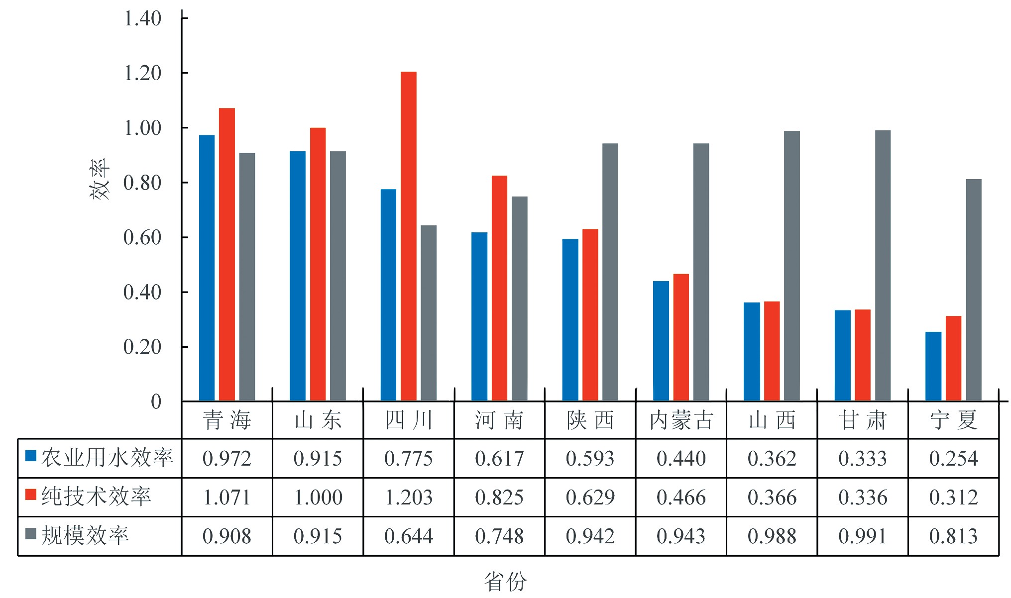 黄河流域农业用水效率较低主要源于其较低的纯技术效率。