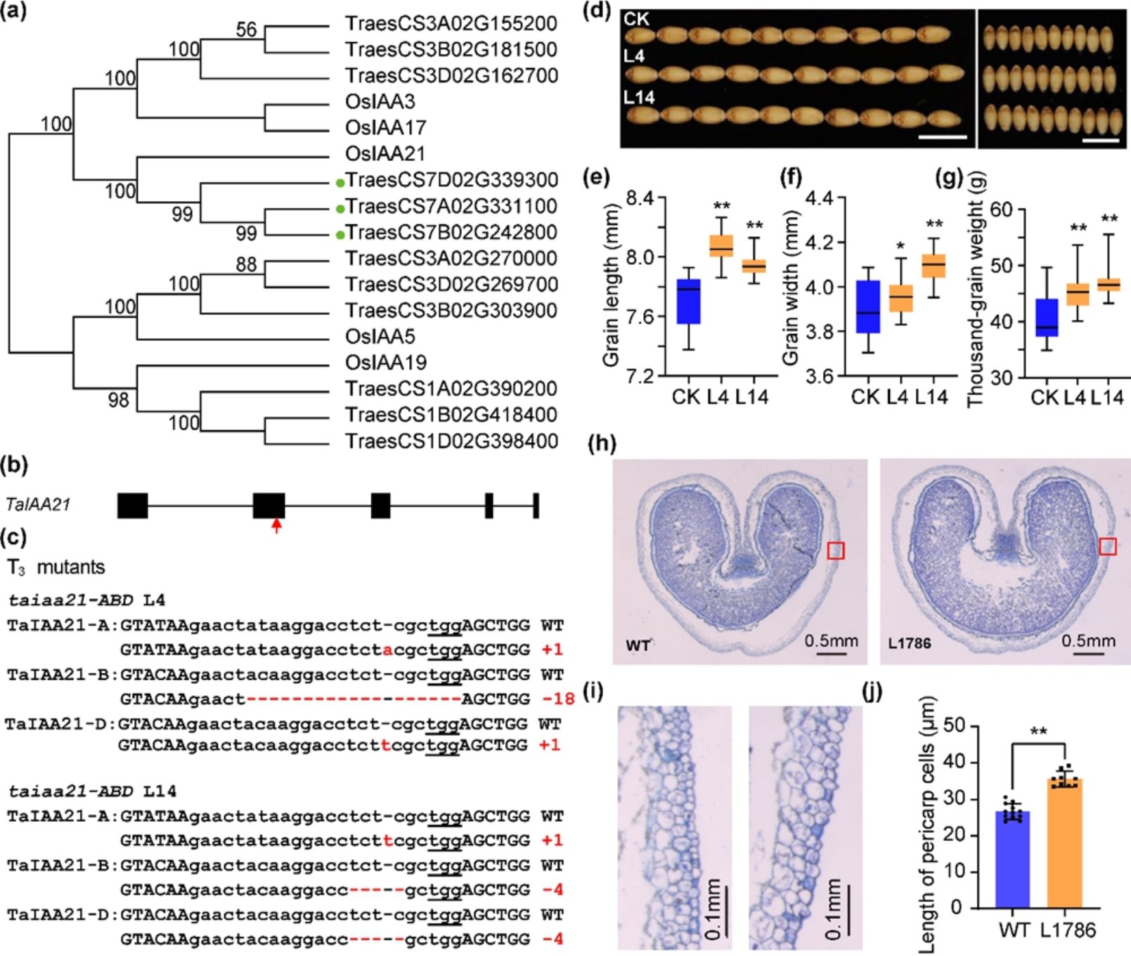 据李爱丽研究员介绍,粒长、粒宽和粒重是影响作物产量的重要因素。生长素信号对籽粒发育具有重要作用。生长素路径负调控因子AUX/IAAs在植物生长素信号传导通路中扮演重要角色,对植物器官发育具有重要作用。但是,到目前为止还没有发现AUX/IAA在小麦籽粒发育中的功能。