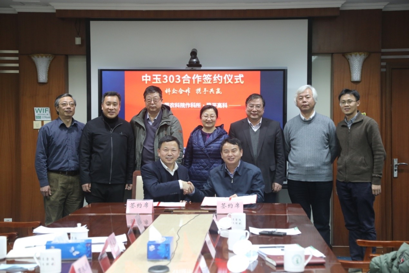 2021年1月12日,中国农业科学院作物科学研究所与安徽隆平高科种业有限公司在北京举行了国审玉米新品种中玉303使用权转让签约仪式。作科所所长钱前院士与隆平高科董事长毛长青分别代表双方签约。