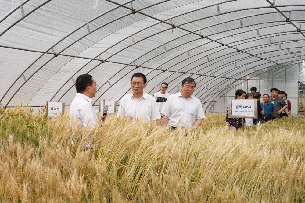中国农业科学院作物科学研究所举办“小麦藏粮于技计划优异抗逆种质资源田间展示暨研讨会”,展示了小麦基因资源发掘与利用创新团队筛选出的455份表型多样的抗旱耐热小麦种质,其中蕴藏着丰富的抗旱耐热基因资源,可供小麦育种家们按需选择利用。中国农科院党组书记张合成、副院长万建民院士,中国工程院刘旭院士、程顺和院士、康振生院士、胡培松院士,院办公室主任王晓举、科技管理局局长任天志、成果转化局局长王述民,作科所领导班子、“藏粮于技”项目组专家等领导和专家通过现场以及视频连线出席了会议。