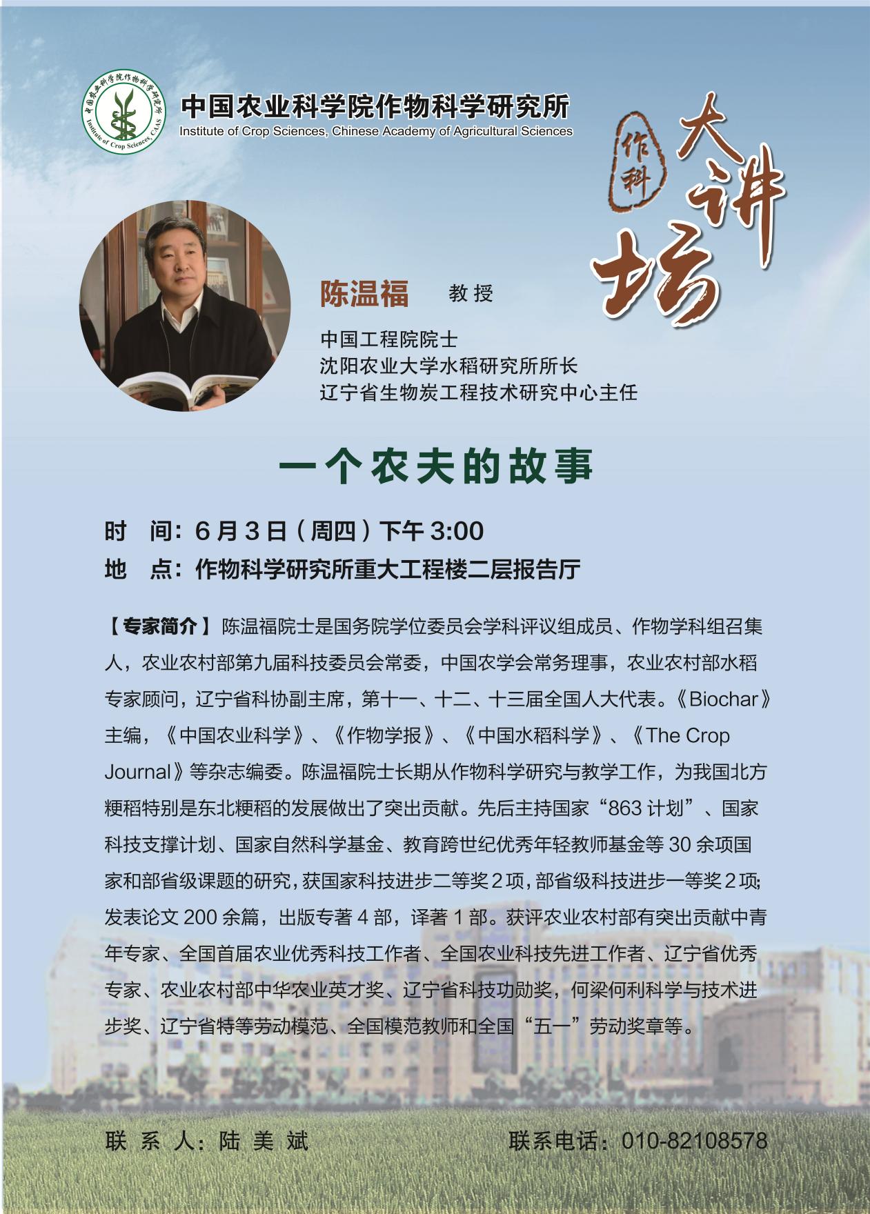【作科大讲坛】陈温福院士 一个农夫的故事