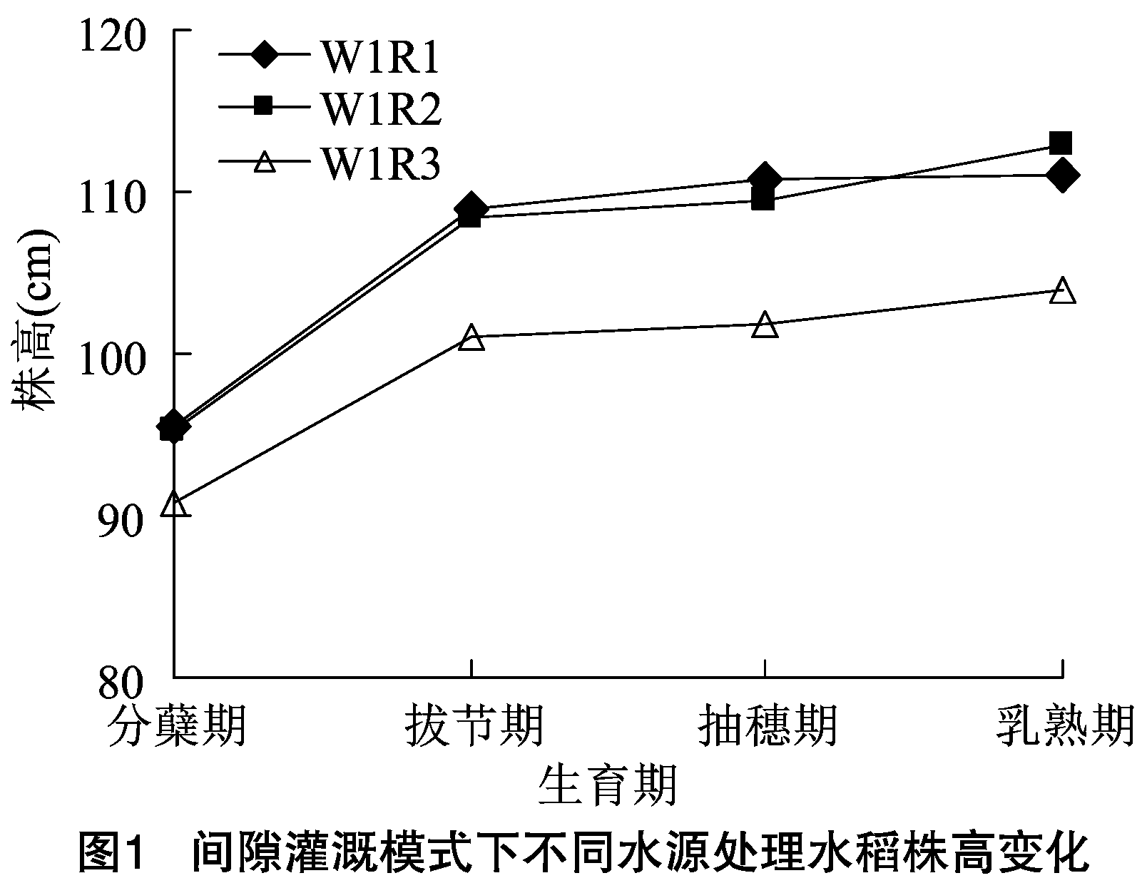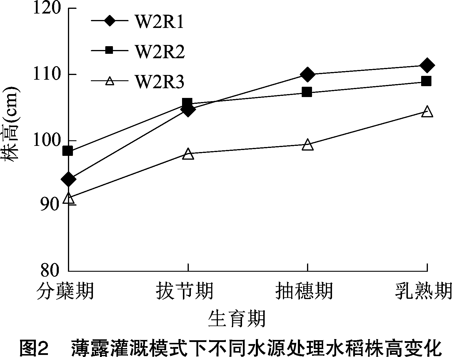 2. 1 稻田不同水源对水稻株高的影响
