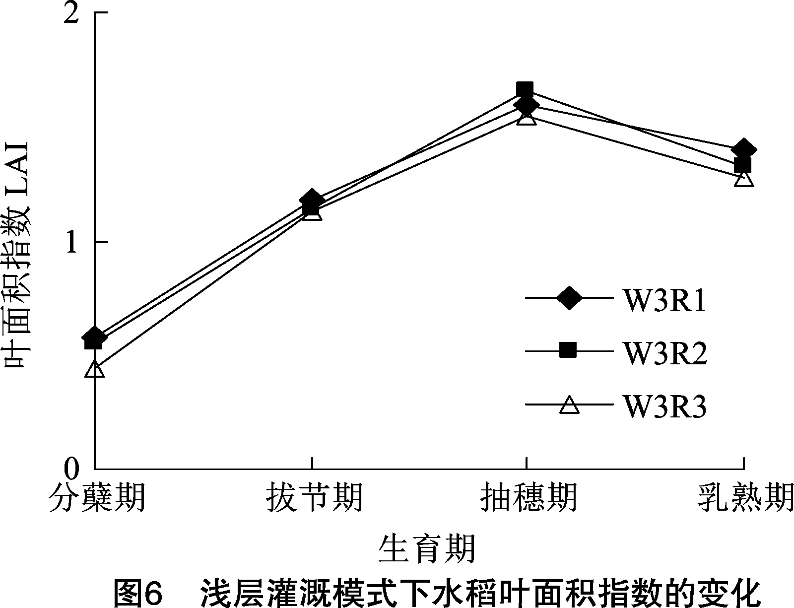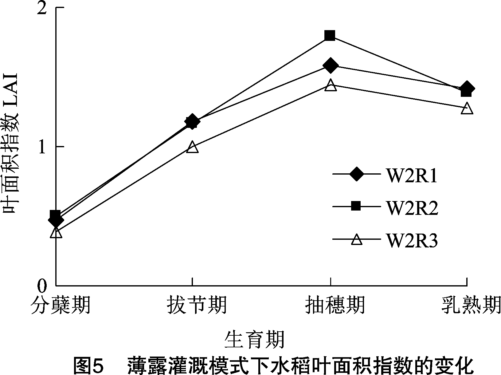 2. 2 稻田不同水源对水稻叶面积指数的影响
