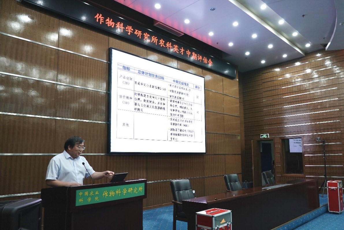作物科学研究所组织开展院农科英才中期评估及所骨干人才遴选会议。中国农科院副院长万建民院士、人事局副局长李巨光、以及来自中国农业大学、中国科学院和北京大学等单位的9名专家出席会议。会议由钱前所长主持。