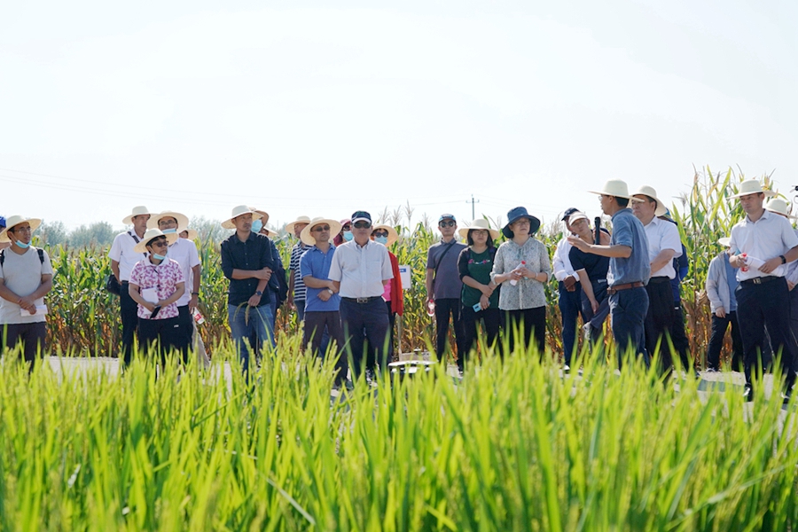 顺义与昌平试验基地本年度内完成了千余份水稻、玉米、谷子等种质资源的精准鉴定,筛选出光温反应迟钝、抗病、抗逆等优异种质,为育种家提供利用了上万份优异新种质。参会人员查看了玉米粗缩病抗性种质创制新技术、RBSBV跨多宿主灵敏检测技术展示;观摩了中单111、中单685等在抗倒耐密、易机收方面表现突出的玉米新品种,2020年度通过国审的高产抗病、优质水稻新品种京粳4号、5号,以及高产稳产、优质、抗病抗倒、广适并适宜机械化作业的国审品种中黄301等20个大豆新品种;并现场品鉴了鲜食玉米中甜401,得到与会专家的一致好评。